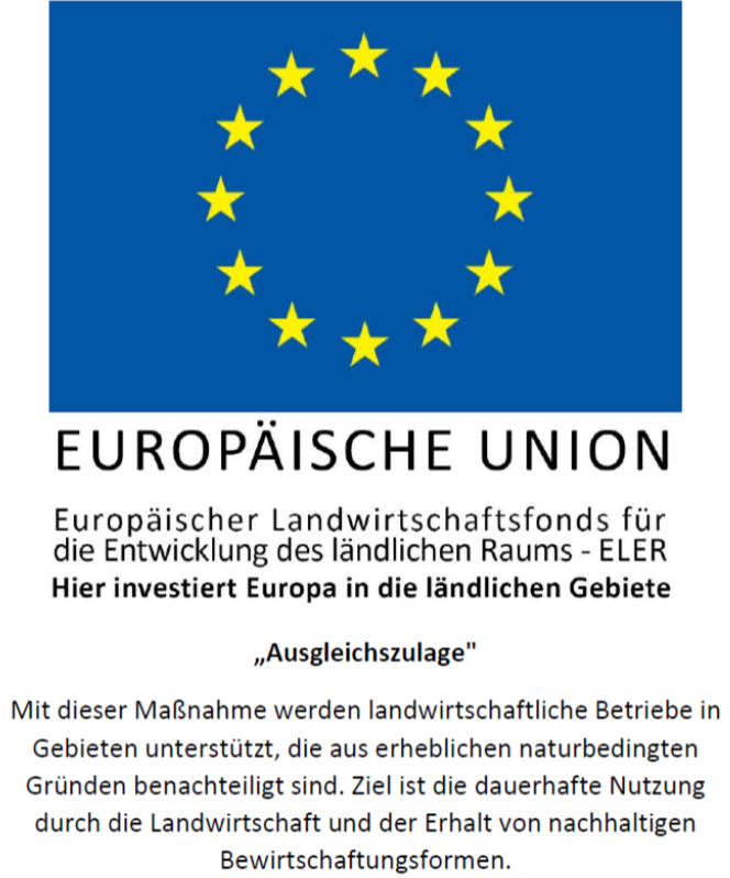 Wir sind Vollerwerbslandwirte und werdenvon der Europäischen Union unterstützt. Informationen finden sie hier.
